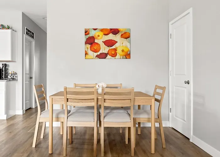 A Irvington House - Stylish Duplex - 10 Min Downtown - Family Friendly Vila está equipada com chaleira, forno e máquina de lavar loiça numa cozinha totalmente equipada. Os hóspedes têm acesso à pizzaria Ball Park Pizza & Eatery, situado a uma pequena distância desta pousada de Indianápolis. A paragem mais próximo é Washington and Linwood EB, localizado a 250 metros de distância.